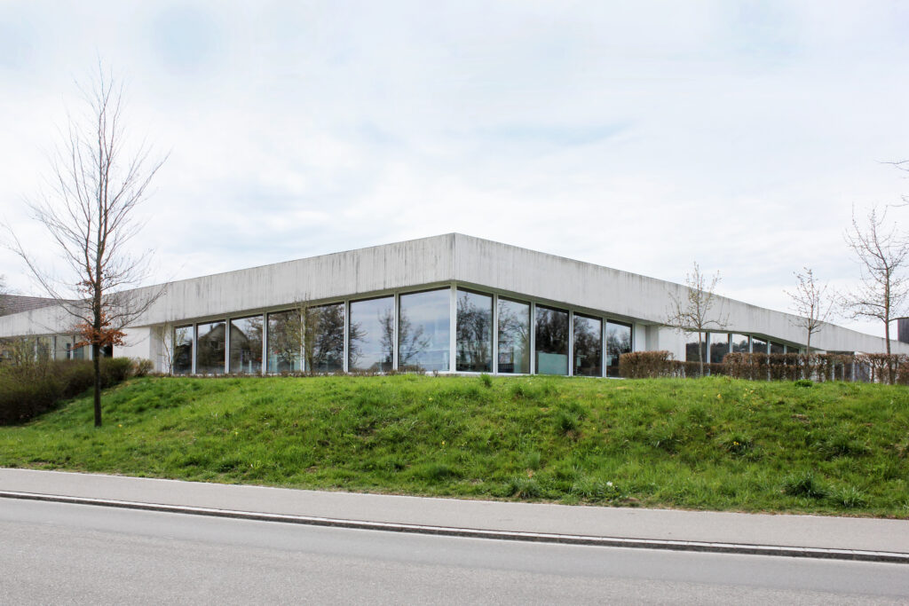 Mit dem Primarschulhaus schufen Rohrer Sigrist Architekten einen Sichtbetonbau, der sich in seinem äusseren Erscheinungsbild bewusst von seiner Umgebung abhebt. Im Kontrast zur dörflichen Struktur von Güttingen kommt das Schulhaus als zeitgemässer Bau daher, der zusammen mit der benachbarten Mehrzweckhalle einen eigenen Bereich definiert. Die Eingeschossigkeit wird dabei als Chance genutzt, den Bau in der Fläche auszubreiten und so die dicht heranreichende Natur mit dem architektonischen Ensemble zu verbinden.
